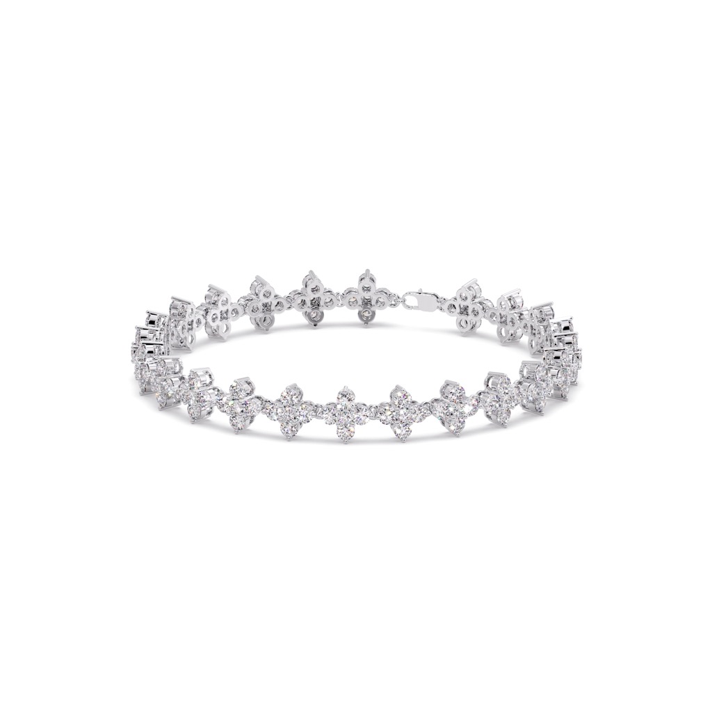 DSBR173bA stunning bracelet featuring multiple five-diamond flower clusters, exuding elegance and brilliance. This blossom radiance bracelet is a must-have for those seeking gold bracelet for women, offering timeless elegance with a modern touch. Perfect for anyone interested in bracelets for women or looking for a beautiful couple bracelets to elevate their style.