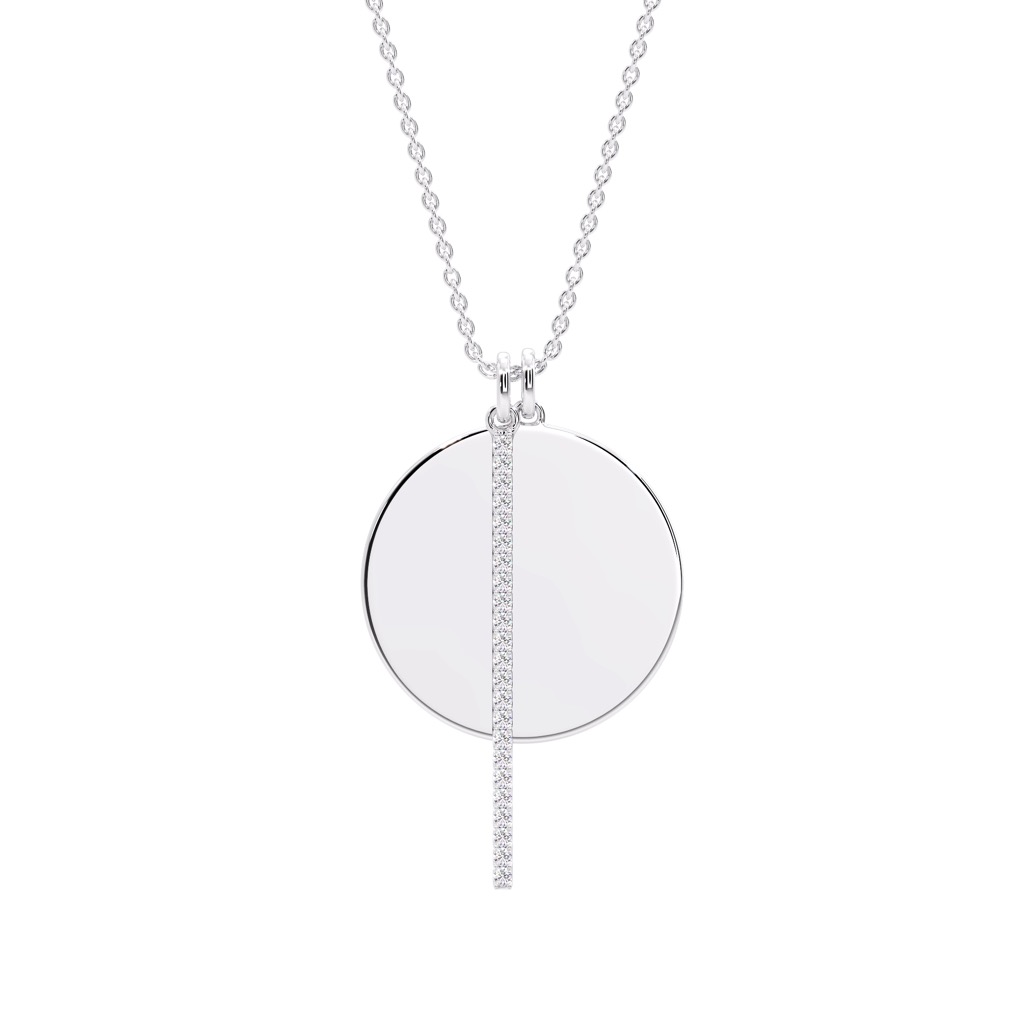 DSNE141Elevate your style with our Disc and Pave Bar Pendant, a stunning fusion of elegance and sophistication in radiant gold. This gold disc pendant is a must-have for those seeking gold necklace design, offering timeless elegance with a modern touch. Perfect for anyone interested in gold ring for men or looking for a beautiful bracelets for women to elevate their style.